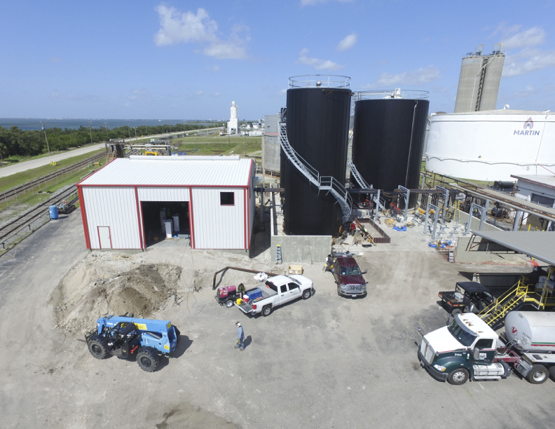 The project also includes demolition of one (1) existing API 650 tank; setting four (4) 500 HP pumps (furnished by others) and connecting them to terminal piping; providing steam jacketing and insulation for the pumps; and supplying and installing a steam snuffing system for three (3) existing tanks, with piping terminating approximately three (3) feet above grade. The new tank will be 120’-0” in diameter and 48’-0” tall, featuring a column and rafter supported cone roof, galvanized carbon steel double stringer spiral stairs, roof perimeter handrail, steam snuffing system piping, air sparger, and standard API appurtenances.